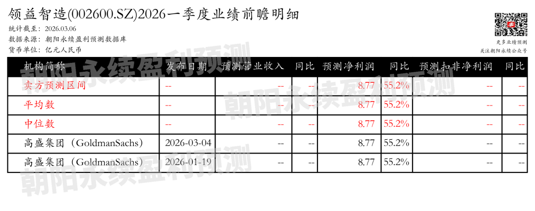 限制2026年03月06日,凭证向阳永续季度事迹前瞻数据: