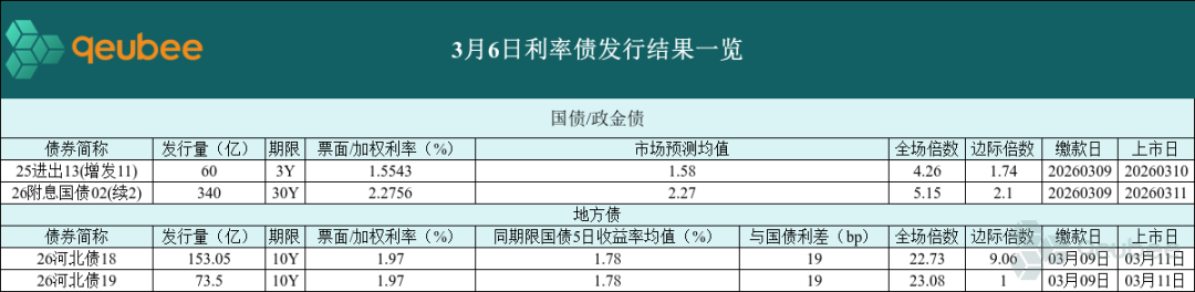 注:qeubee整理汇总当日一级市集招标信息(暂不包括浮息债),最终效果以关联
