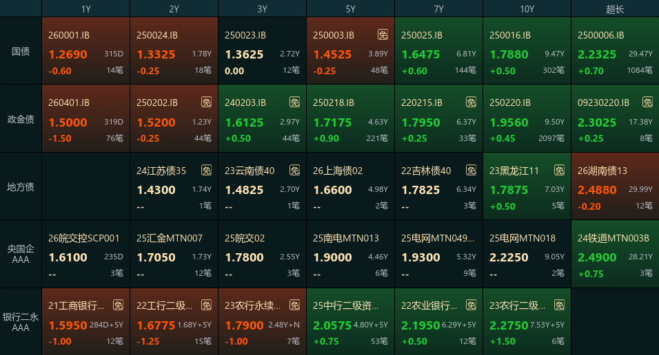 10年期国债活跃券250016开盘报1.782%,收益率较上日收盘上行0.5bp报1.7880%;