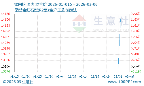 以国内阛阓走货量较大的硫酸法金红石型钛白粉为例。凭证营业社数据监测显露,本周国内钛白粉阛阓行情高涨,上周五钛白粉阛阓均价为13900元/吨。本周五钛白粉均价为14160元/吨,价钱上调1.87%。