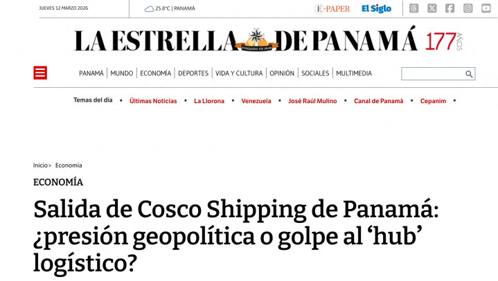 3月12日,巴拿马最具影响力和巨擘性之一的媒体《巴拿马星报》称中国中远集团退出巴拿马,或将对巴拿马赖以活命的航运中心业务形成剧烈冲击,而该国金融界东说念主士在接受该报采访时月旦巴拿马政府在对华嘱托方面“敷衍”。
