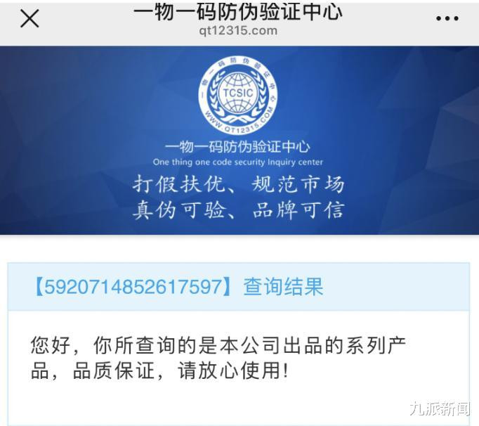 同期,记者珍重到,购买的几罐驼奶粉的盖子上都贴着一个防伪码,好多消耗者买的时刻都会下毅力扫一下罐盖上的防伪码。记者也扫了,系统清认知爽夸耀“考据见效”。可这就能宽解吗?施行上,这个名叫“一物一码防伪考据中心”的平台,既不是官方机构,也不是品牌自建,而是一家第三方平台制作的,说白了只消用钱,这类防伪码十足不错批量定制。