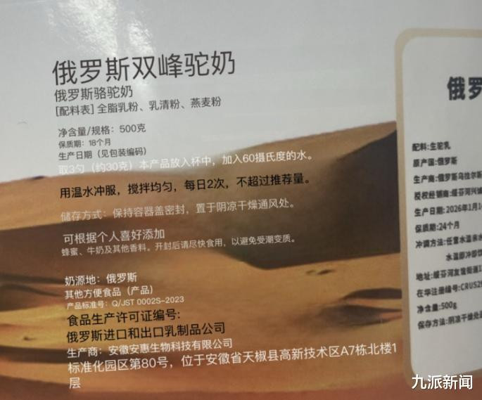 诱骗信息与禀赋核查成果不难判断,市面上热销的“俄罗斯双峰骆驼奶粉”,既不来自俄罗斯,也莫得正规的驼乳奶源撑捏。
