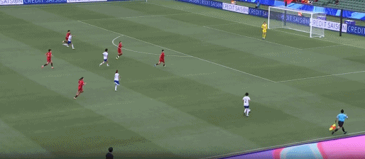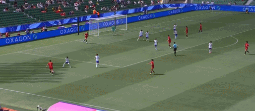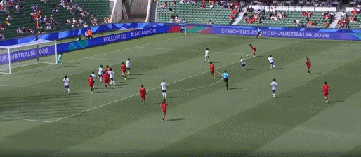 第33分钟,张馨左路斜传中,禁区内的3位队友包抄,却未能造成攻门。